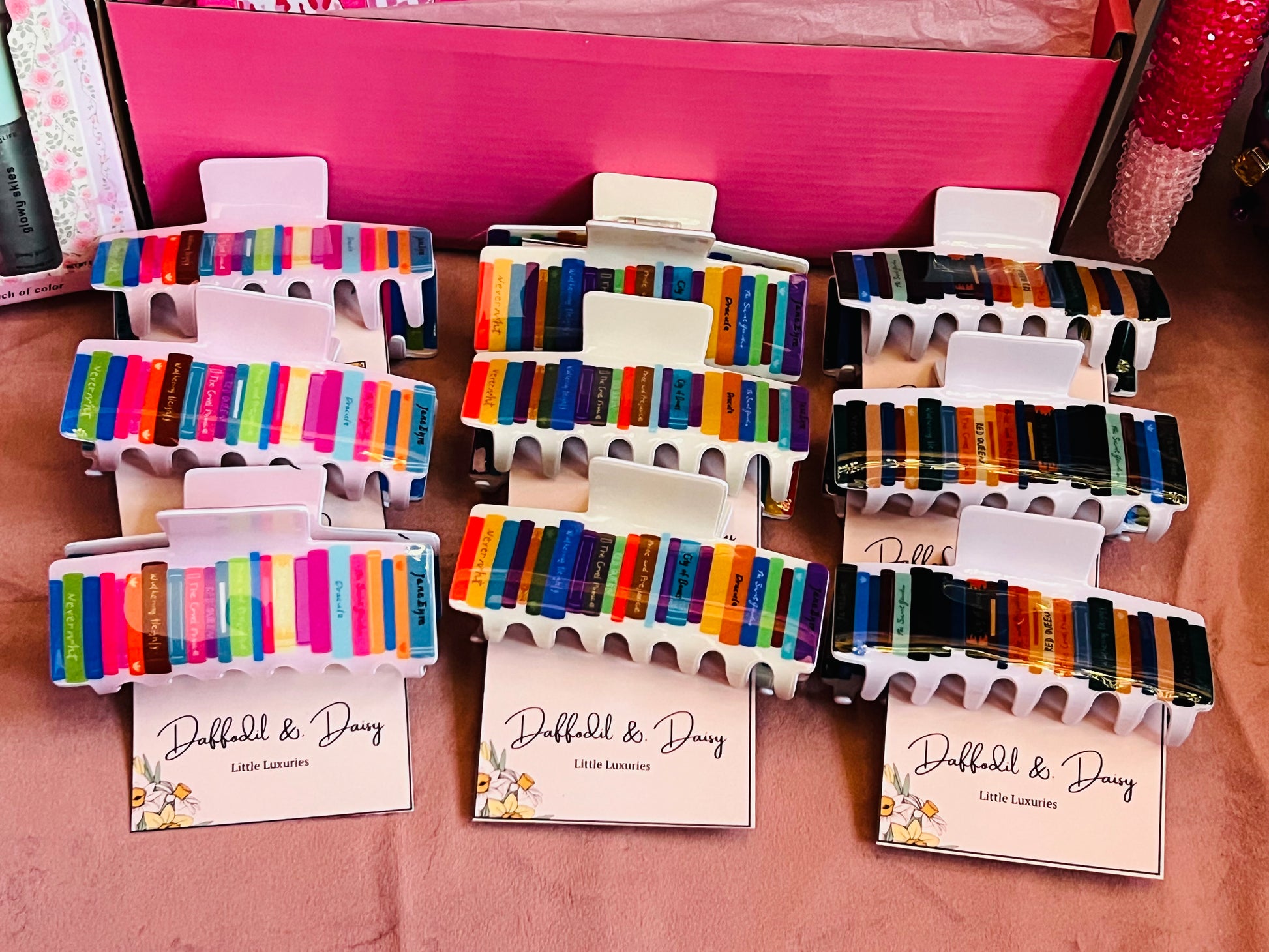 Perfect for teachers, librarians, and book lovers everywhere, the All Booked Claw Clip adds a playful literary touch to any hairstyle.