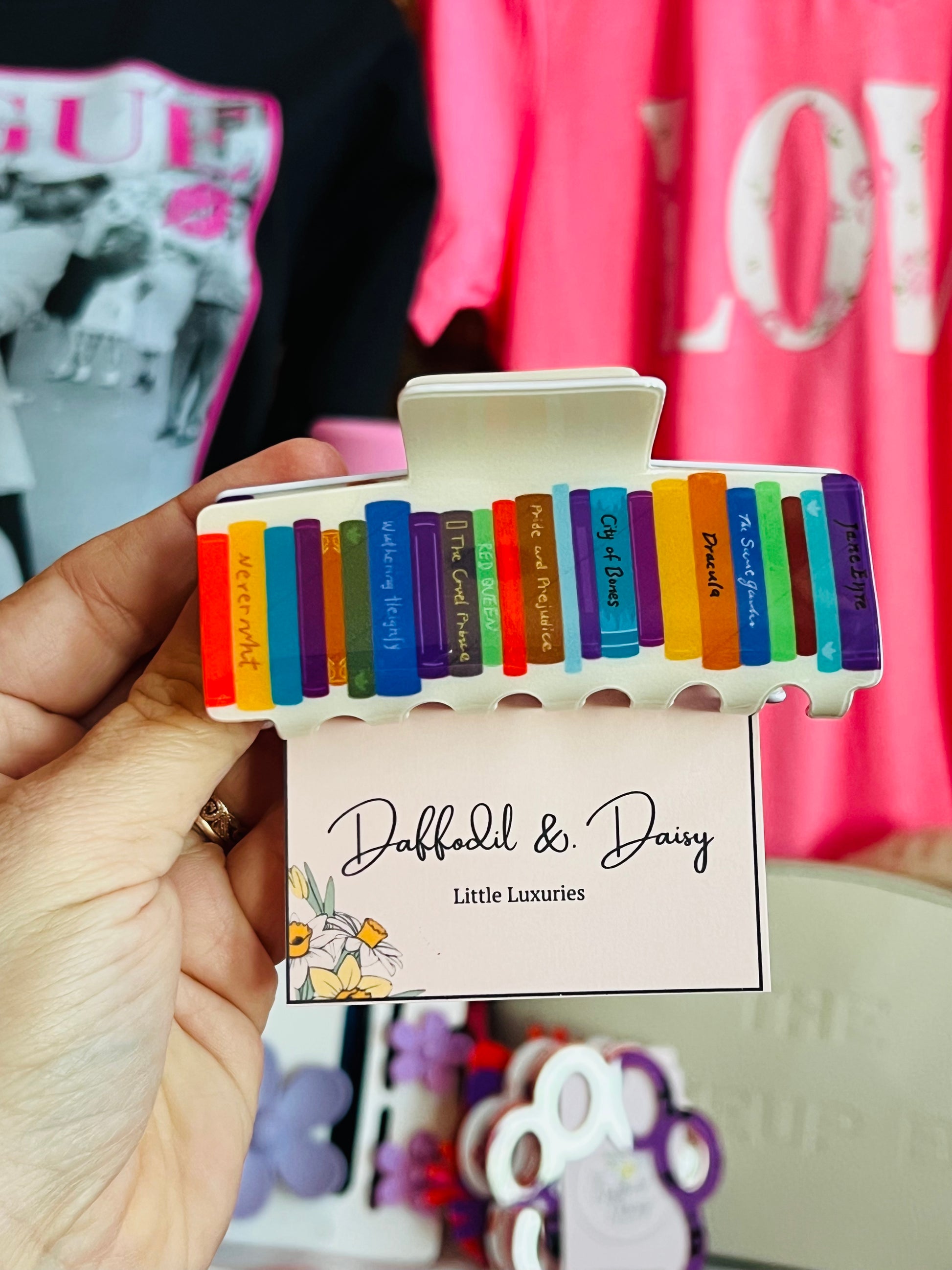 Whether you're heading to the classroom, curling up with your latest read, or running errands, this whimsical claw clip keeps your hair styled while showcasing your passion for books.
