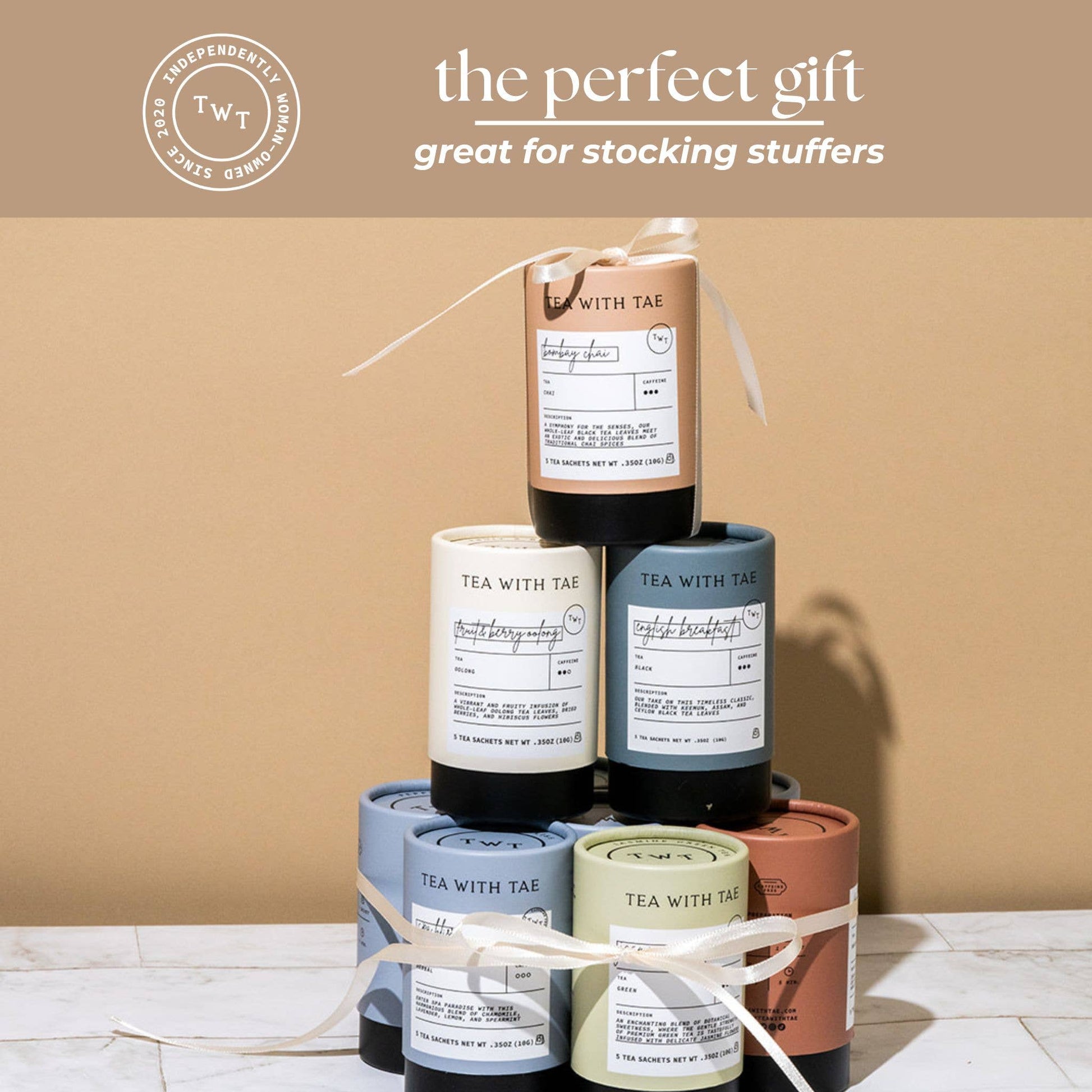 Our mini tea tubes are perfect small gifts for holidays, Christmas, Black Friday, travel, stocking stuffers, checkout line, grab-and-go options, gift baskets, small tokens of appreciation, Mother’s Day, Father's Day, back-to-school, teacher gifts, weddings, birthdays, boutique retail shelves, and more.